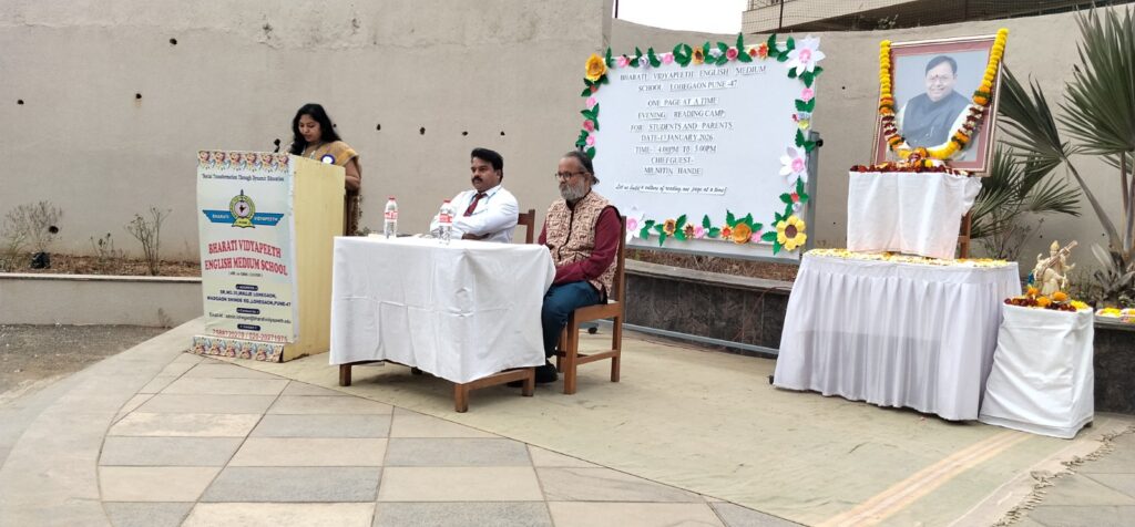 भारती विद्यापीठ इंग्लिश मिडियम स्कूल, लोहगाव फाउंडर्स वीक च्या अनुषंगाने तसेच डॉ. विश्वजीत कदम वाढदिवसानिमित्त वन पेज ॲट अ टाइम इव्हिनिंग रिडिंग कॅम्प या नावाने एक अत्यंत स्तुत्य आणि विद्यार्थ्यांच्या बौद्धिक विकासासाठी उपयुक्त असा वाचन उपक्रम आयोजित करण्यात आला.